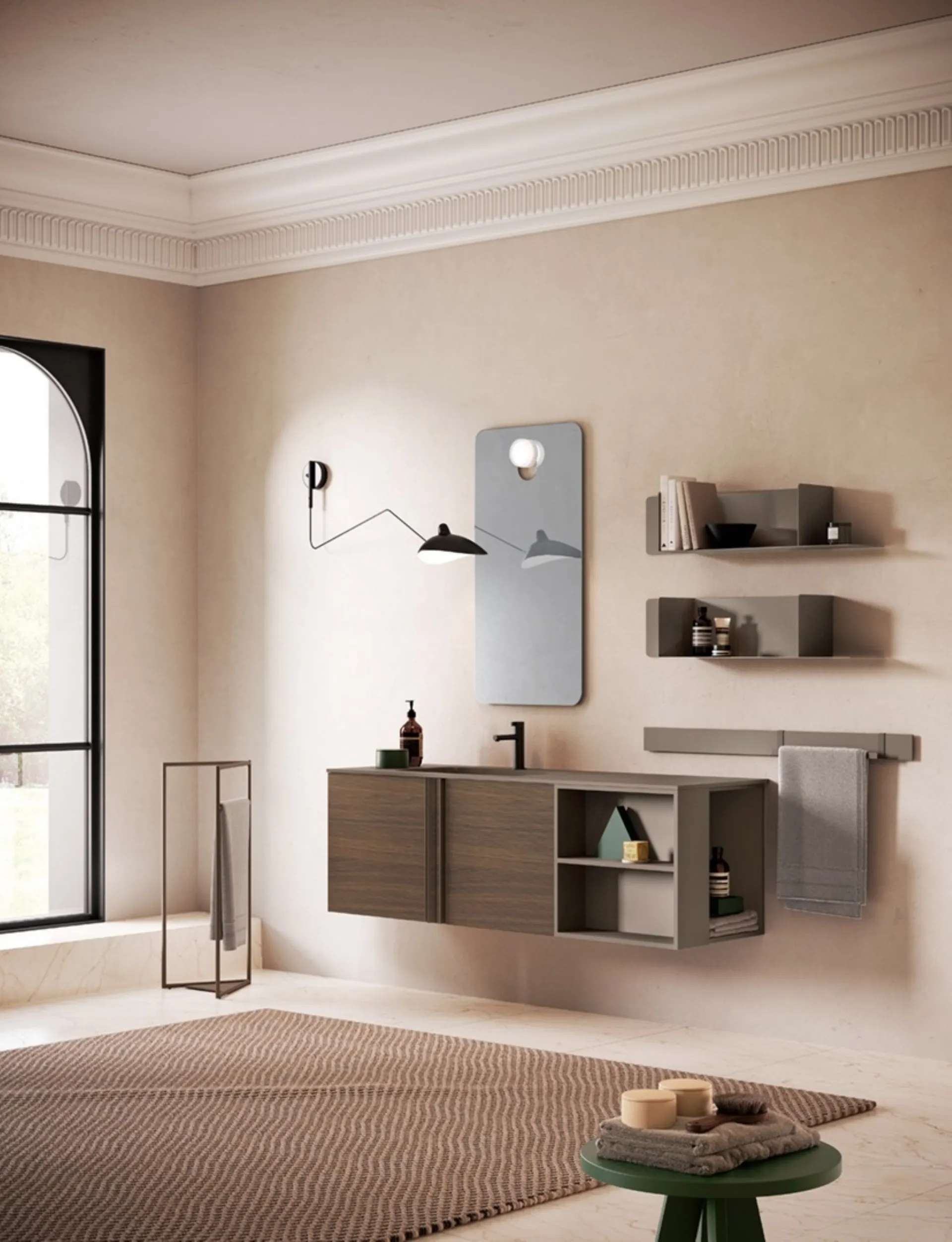 Arredo Bagno Artesi: scopri un ricco catalogo di mobili bagno sospesi in legno, tra cui il modello Re-Start Poker Rovere