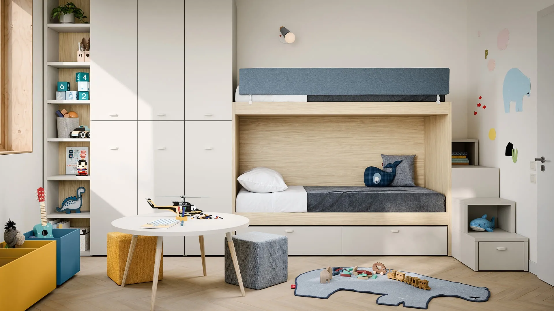 Se cerchi spunti progettuali per organizzare perfettamente la stanza dei tuoi bambini, ti proponiamo la Cameretta con letti a castello Nuk di Nidi con finitura in melaminico. Questa proposta in melaminico ultima perfettamente le doti di funzionalità e l'estetica della camaretta, in quanto è capace di unire ergonomia e sicurezza. Nell'arredo della stanza dei bambini affidati a noi: in negozio proponiamo tutte le più esclusive composizioni moderne per la loro camera. Nidi propone un ricco catalogo di accessori da comporre su misura: troverai letto, armadio o cabina armadio, tavolo da lavoro, sedie e librerie.