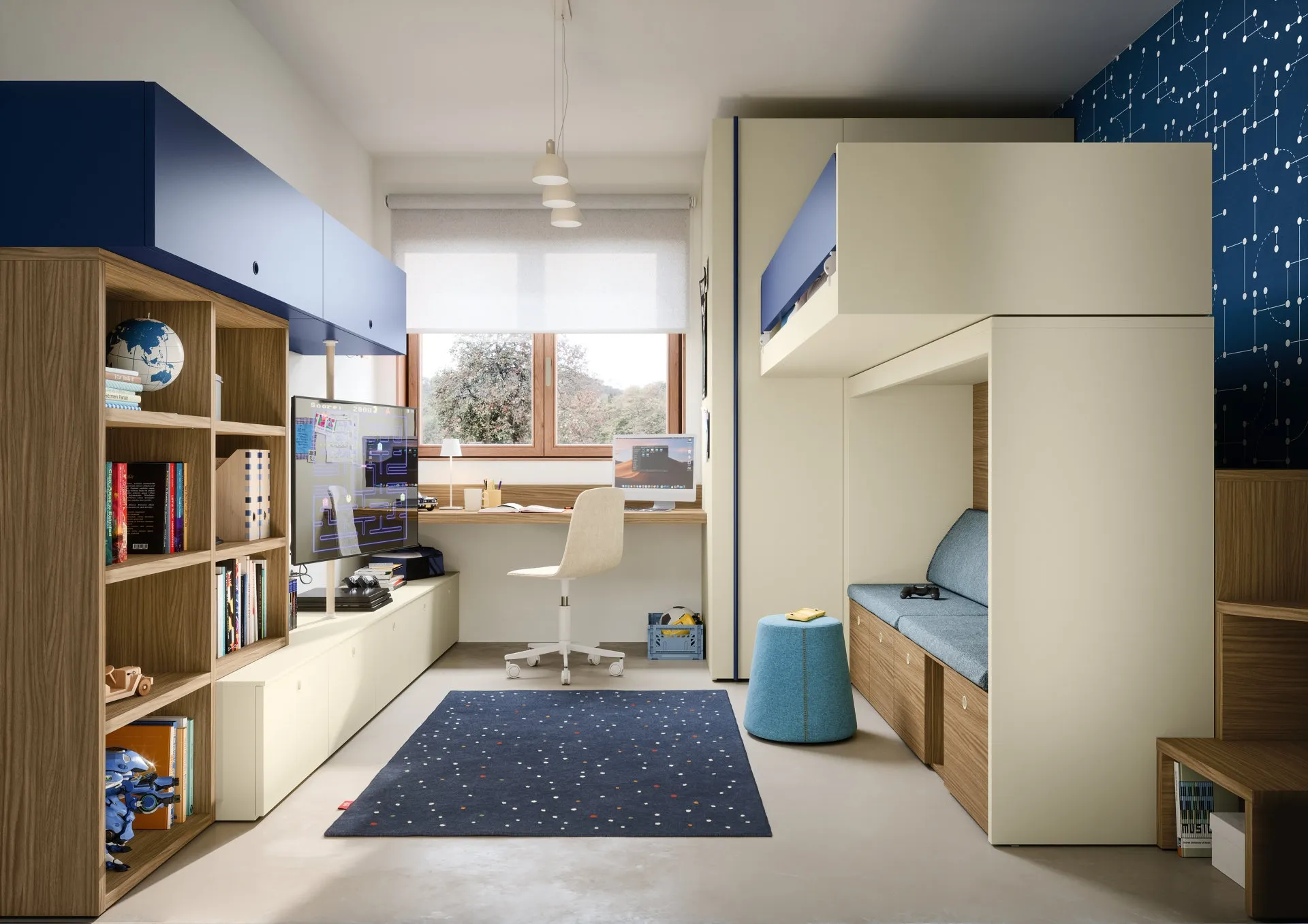 Per decorare al meglio le Camerette, Nidi offre progetti articolati e versatili: sono molteplici le attività che i tuoi figli svolgono lì. Visitare il nostro negozio significa visionare in prima persona tutte le più belle soluzioni per bambini con letti a castello in melaminico che proponiamo in negozio. Con la Cameretta con letti a castello Skid di Nidi renderai la stanza dei tuoi figli un ambiente davvero funzionale e sicuro, che li accompagnerà mentre diventano grandi. Questa proposta con finitura in melaminico, tra quelle con letti a castello per bambini di Nidi, accontenta le necessità degli adulti e i gusti dei giovani.
