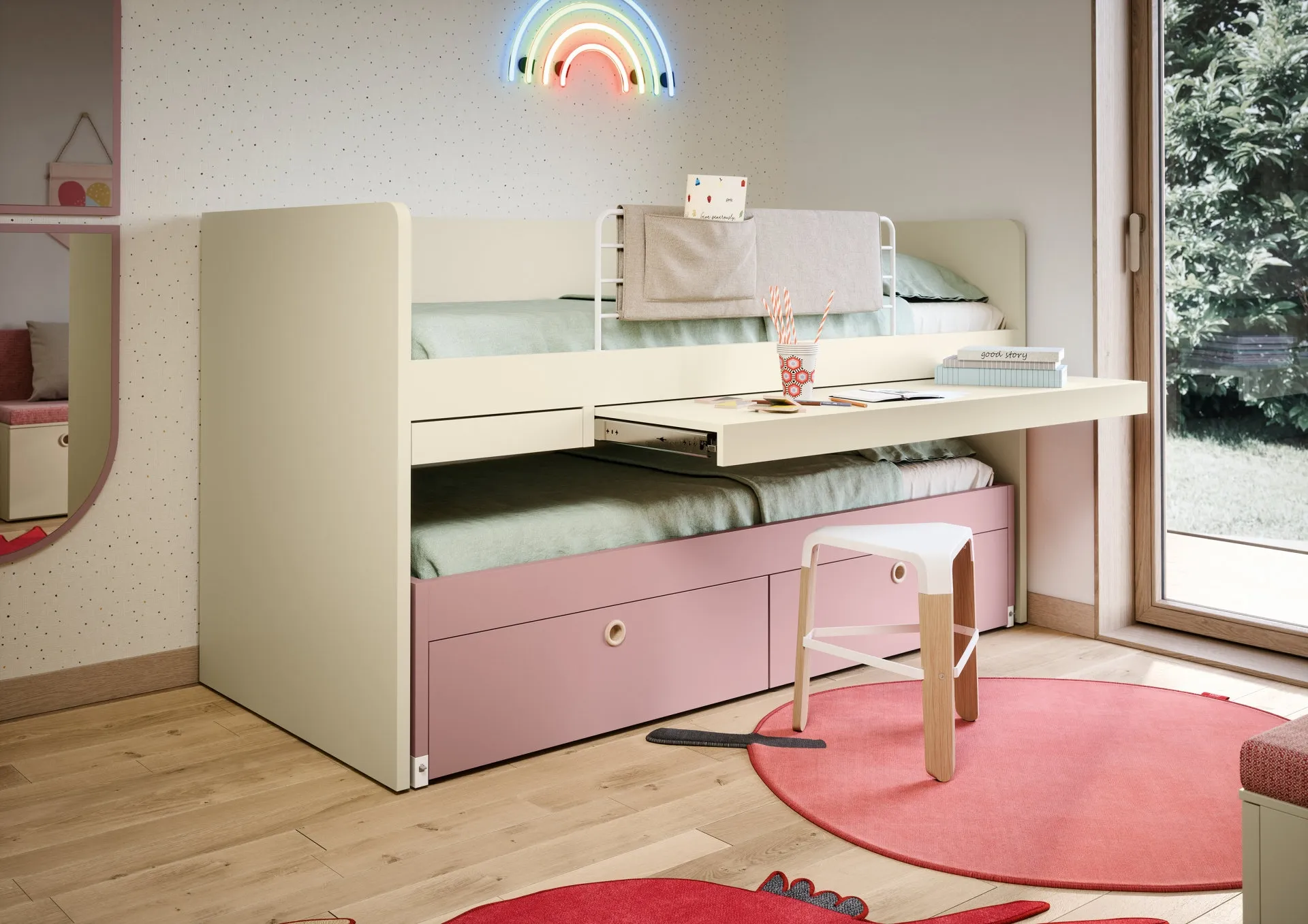 Nidi offre una ricca gamma di elementi accessori da accostare su misura: troverai letto, guardaroba, scrivania, sedie e librerie. Se cerchi spunti creativi per decorare al meglio la stanza dei tuoi bambini, ti proponiamo la Cameretta Salvaspazio Turca di Nidi con finitura in melaminico. Porta estetica e colori vivaci nella stanza dedicata ai bambini con questa soluzione, una tra le Camerette salvaspazio per bambine di Nidi. Nell'arredamento della stanza dei piccoli affidati a noi: nel nostro punto vendita proponiamo tutte le più originali composizioni moderne per la loro camera.