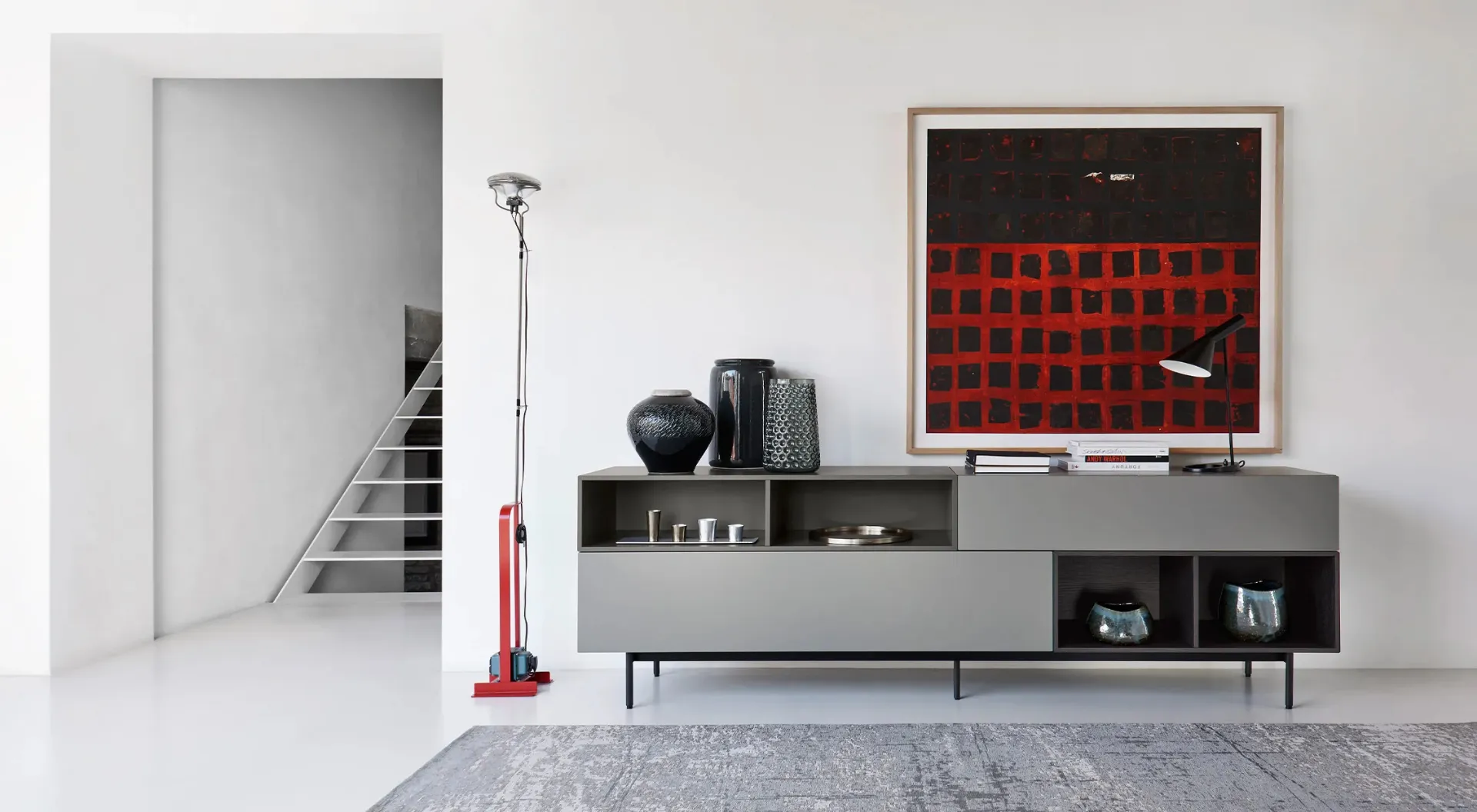 La Madia Open 02 di Sangiacomo in foto in laccato opaco risolve le più personali necessità di spazio e stile, arredando il living con praticità e uno stile unico. Se quello che stai cercando è un modello di madia salvaspazio, scopri in negozio un ricco catalogo di Arredamento Casa dei migliori produttori e contattaci per informazioni e preventivi. Se sei un appassionato di arredamento e sei sempre aggiornato riguardo l'evoluzione del design nel campo, il nostro centro espositivo è il luogo ideale per te. Le Madie moderne, tra cui il modello presente in foto, rendono belli il living o la sala da pranzo grazie a design unico e grandi doti di contenitività.