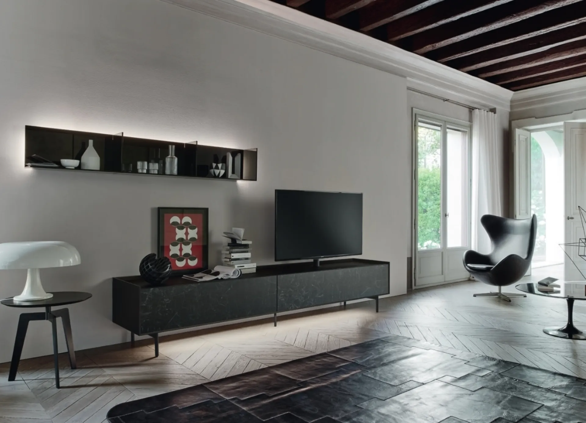I Mobili Porta Tv, se scelti con cura, aiutano a completare il tuo soggiorno fungendo da plurifunzionale piano d’appoggio per la tua oggettistica, per la TV e quant'altro. Utili e di alto valore estetico, i nostri Mobili Porta Tv Sangiacomo in legno per ambienti moderni sapranno ottimizzare gli spazi personalizzandoli. Che tu desideri riporci la televisione, libri o oggettistica varia, un mobile come quello visibile in foto saprà completare gli spazi indoor arricchendone l'estetica. Nella zona giorno servono mobili che ci accompagnino nella vita in casa, facilitando i gesti che facciamo nel quotidiano e creando peculiari atmosfere. Il modello in foto appartiene alla linea di Mobili Porta Tv moderni in legno di Sangiacomo: in negozio troverai solo le proposte più originali in commercio.