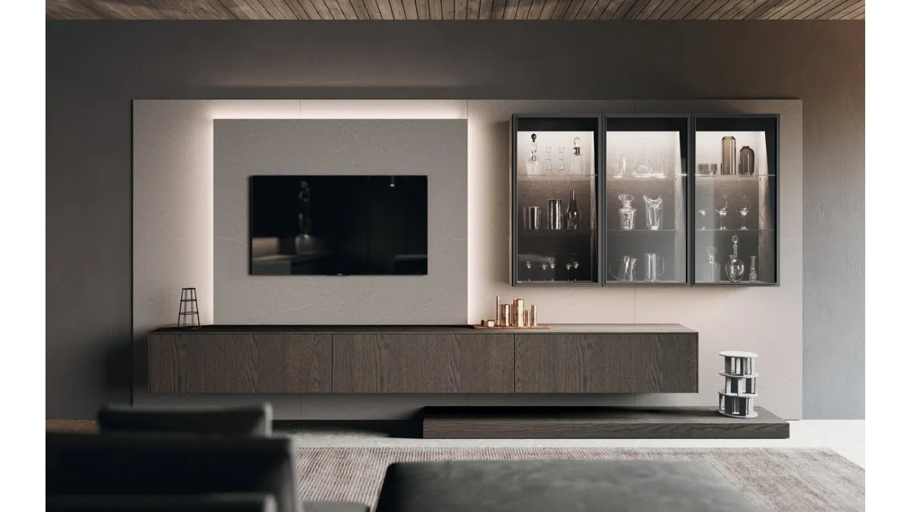 Tra le Pareti Attrezzate moderne Binova ecco il modello Bluna Legno 01 Finitura