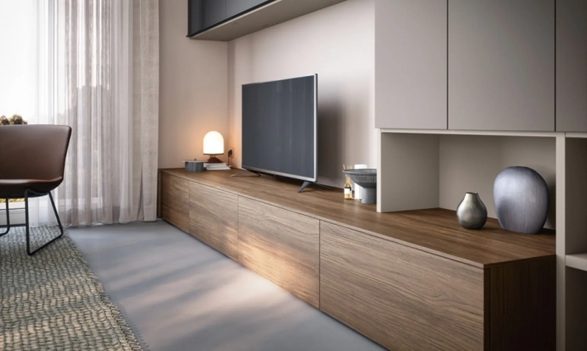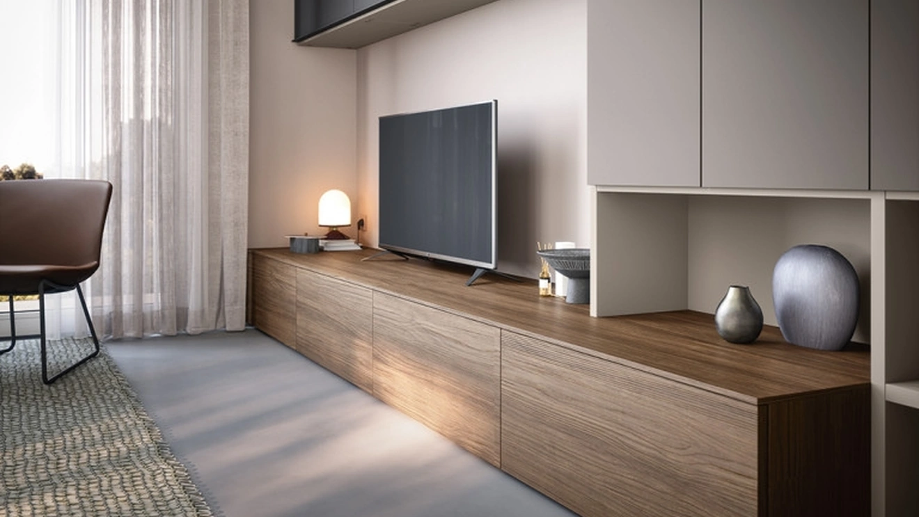 Parete attrezzata dalle linee moderne realizzata in melaminico: scopri il nostro Arredamento Casa Cinquanta3
