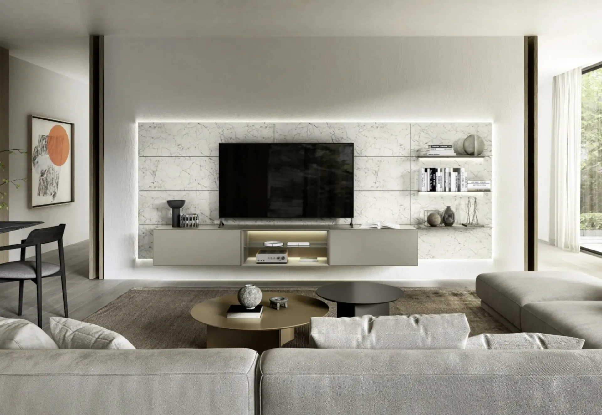 Per informazioni e preventivi sulla Parete Attrezzata Domino Boiserie 05 di Sangiacomo nell'immagine contattaci! Il modello proposto è realizzato in laccato opaco, ma grazie ad una grande varietà di texture, tonalità e conformazioni, potrà adattarsi a stili di ogni genere. Attraverso un gioco dinamico di accostamenti fra elementi a giorno o vani chiusi, le Pareti Attrezzate moderne arredano il soggiorno valorizzando ogni spazio. Le Pareti Attrezzate hanno conquistato un posto di primo piano nella zona giorno delle nostre case: sono mobili plurifunzionali e salvaspazio sempre realizzabili su misura per te.