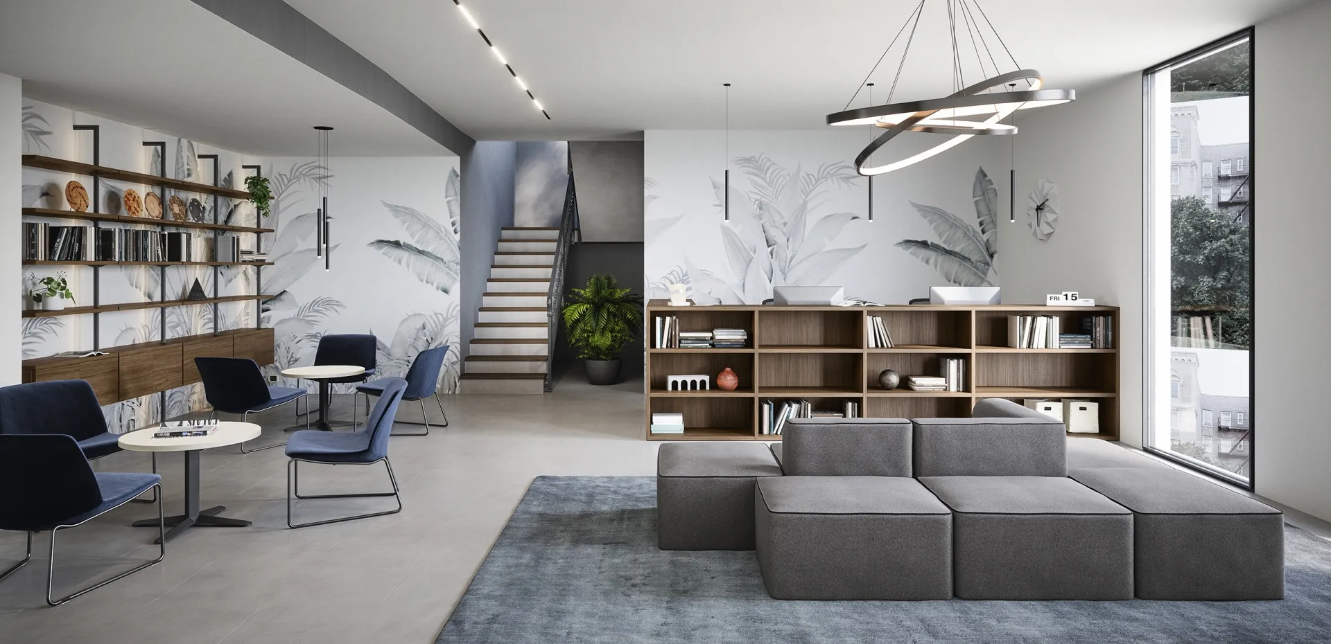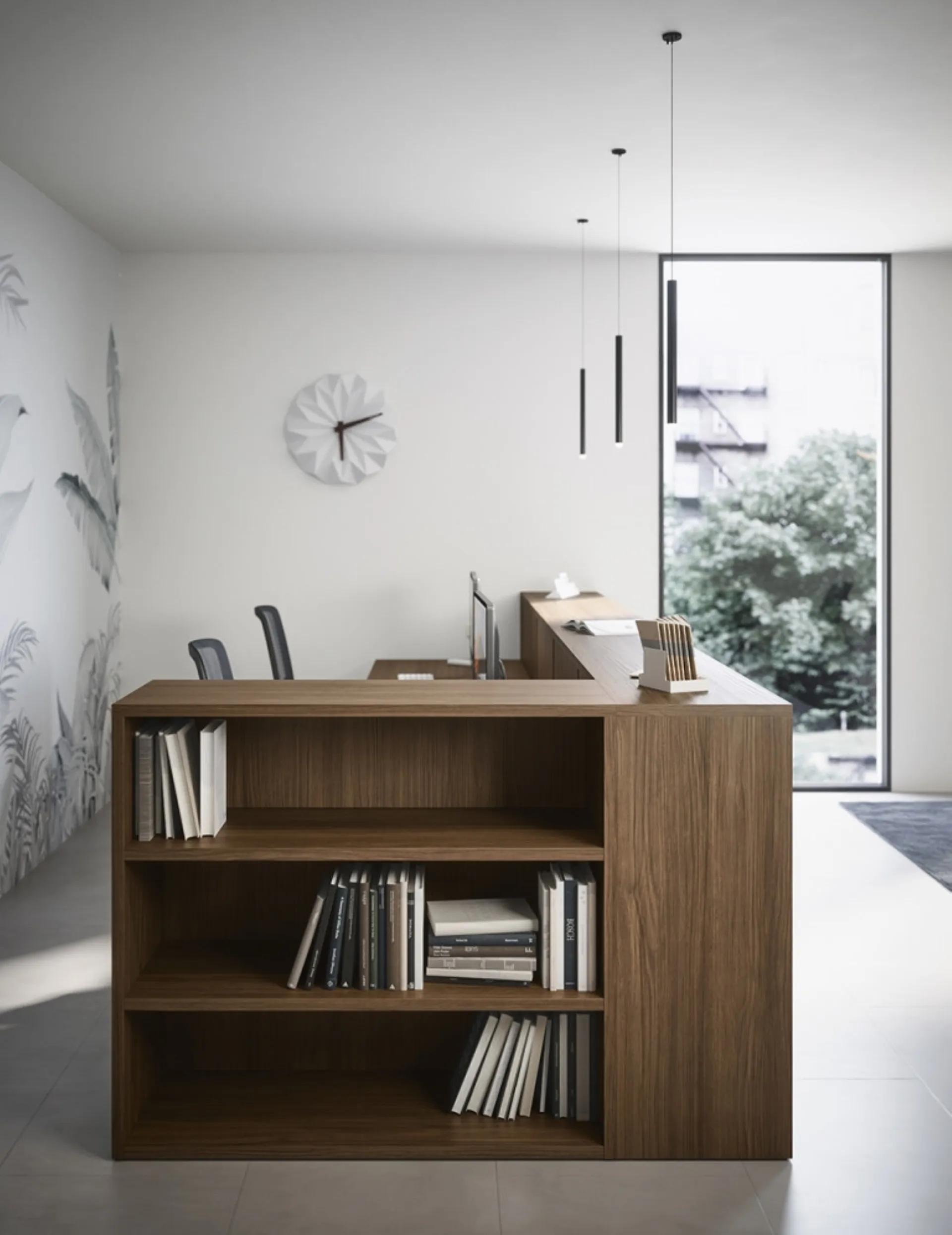 Nel nostro showroom proponiamo diverse composizioni arredative con banconi reception Cinquanta3 in melaminico, sempre in materiali durevoli e resistenti negli anni. Il noto e conosciuto brand si muove sempre al passo con le esigenze individuali, difatti mette a disposizione ogni sorta di Arredo Ufficio in melaminico. Oggigiorno l’Arredo Ufficio deve dare risposta a le esigenze di praticità e comfort per chi lavora, quelle di accoglienza e serietà soprattutto per i clienti. Materiali di prima scelta, un certo stile e linee ben studiate caratterizzano la ricca collezione di mobili per gliambienti lavorativi del brand Cinquanta3.